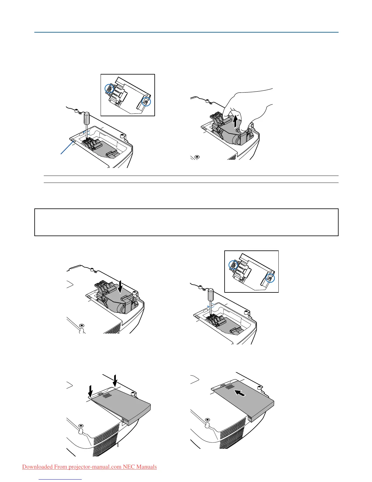 Do not use a lamp other than the NEC replacement lamp VT85LP (VT580/VT480) or VT80LP (VT58/VT48).