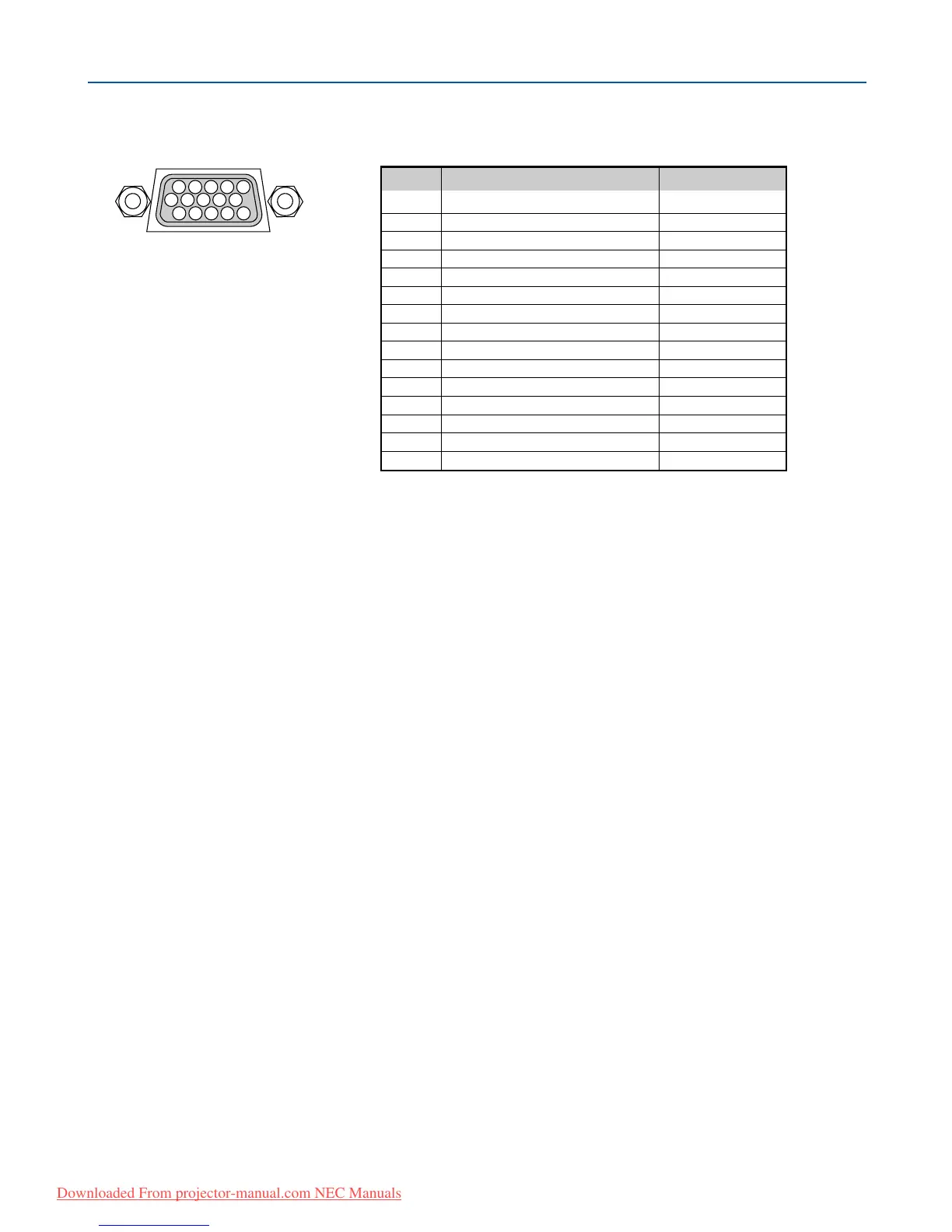 Pin Assignments of D-Sub COMPUTER Input Connector