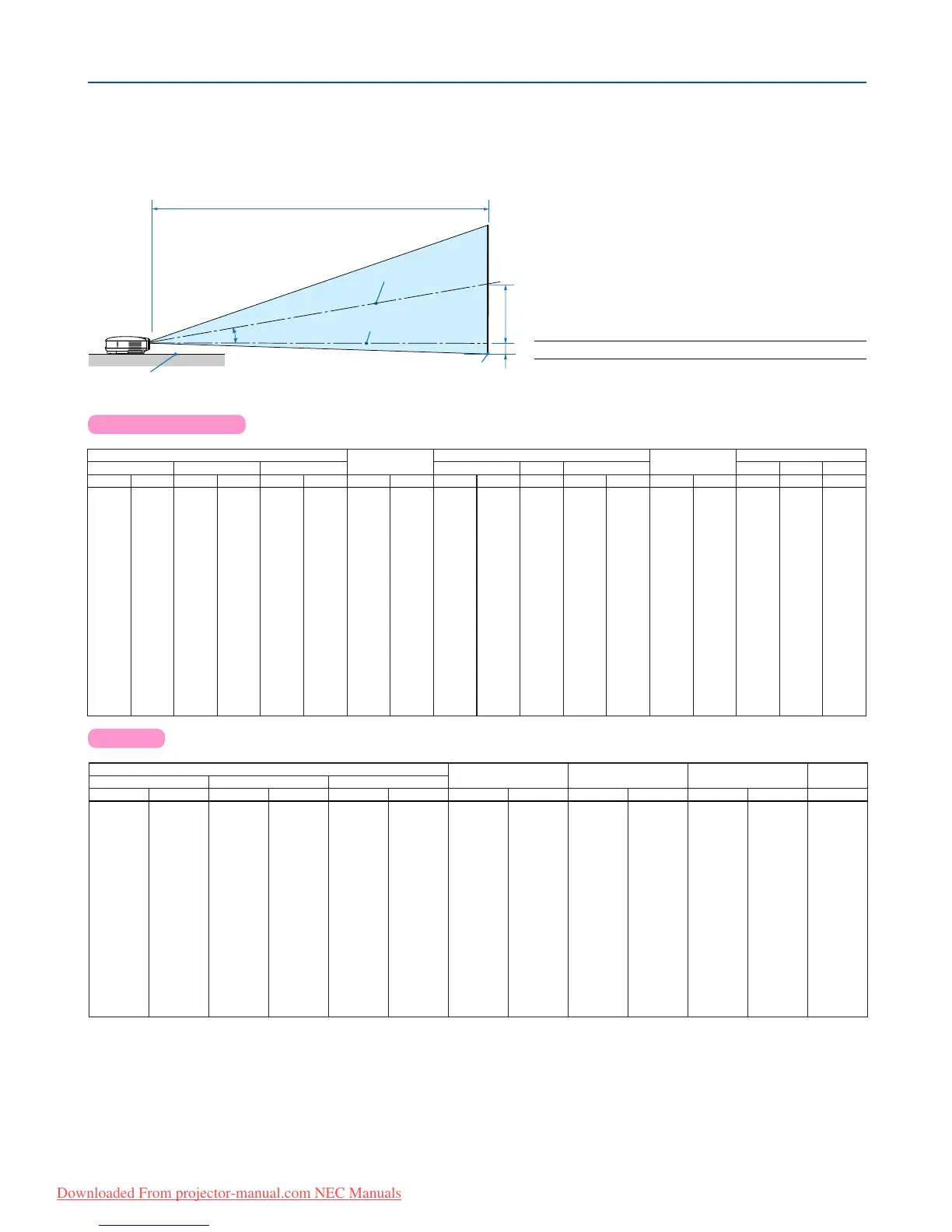 The following shows the proper relative positions of the projector and screen. Refer to the table to determine the