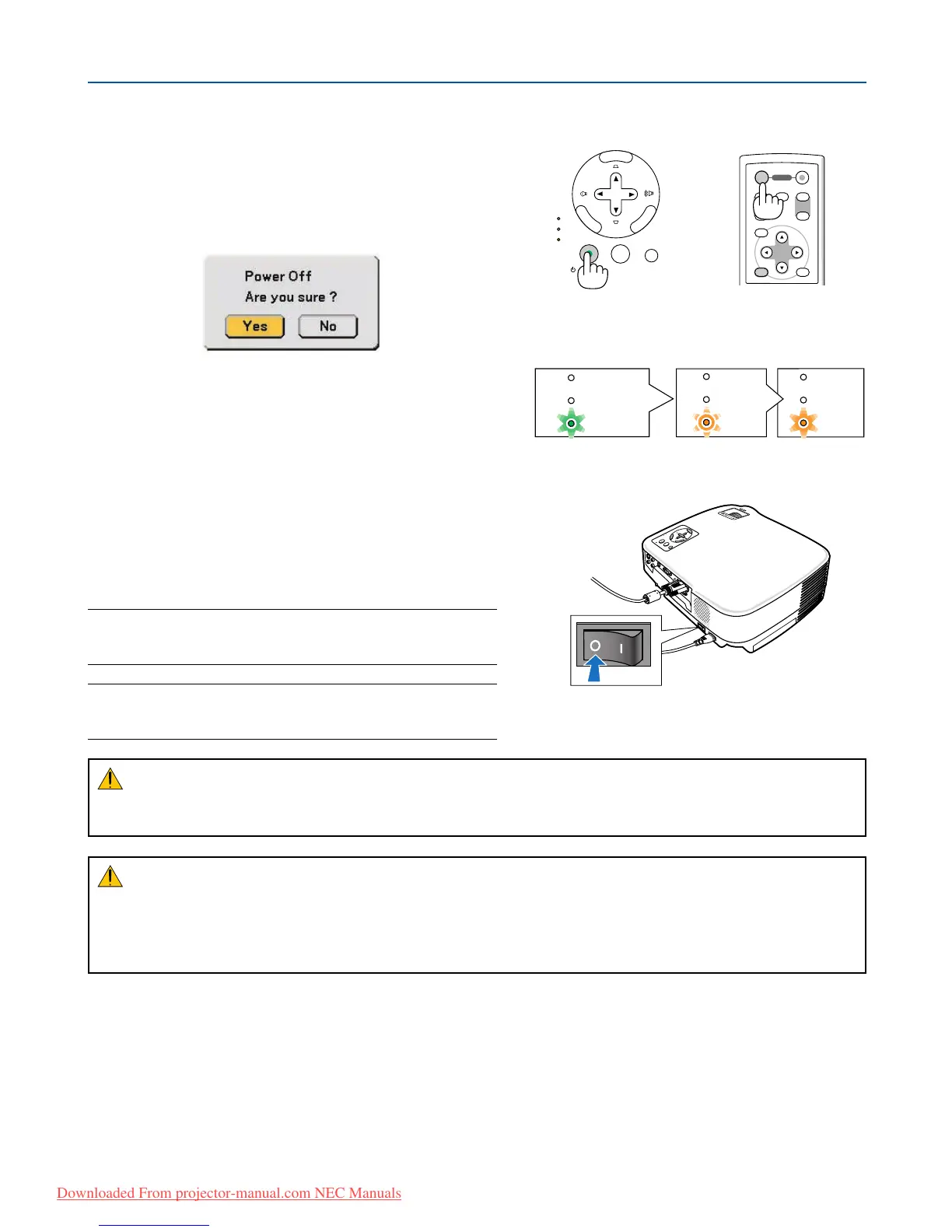 the projector cabinet or the POWER OFF button on