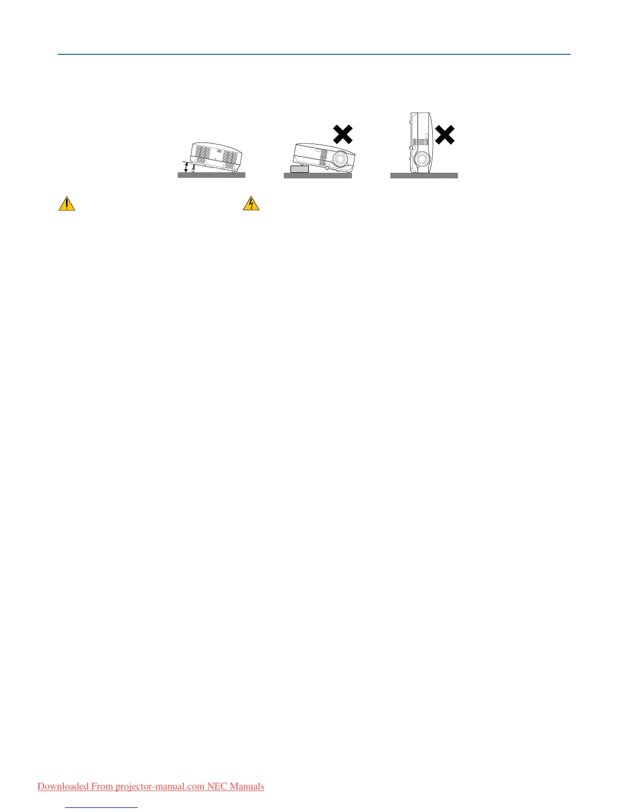 The tilt angle of the projector should not exceed 10 degrees, nor should the projector be installed in any way other