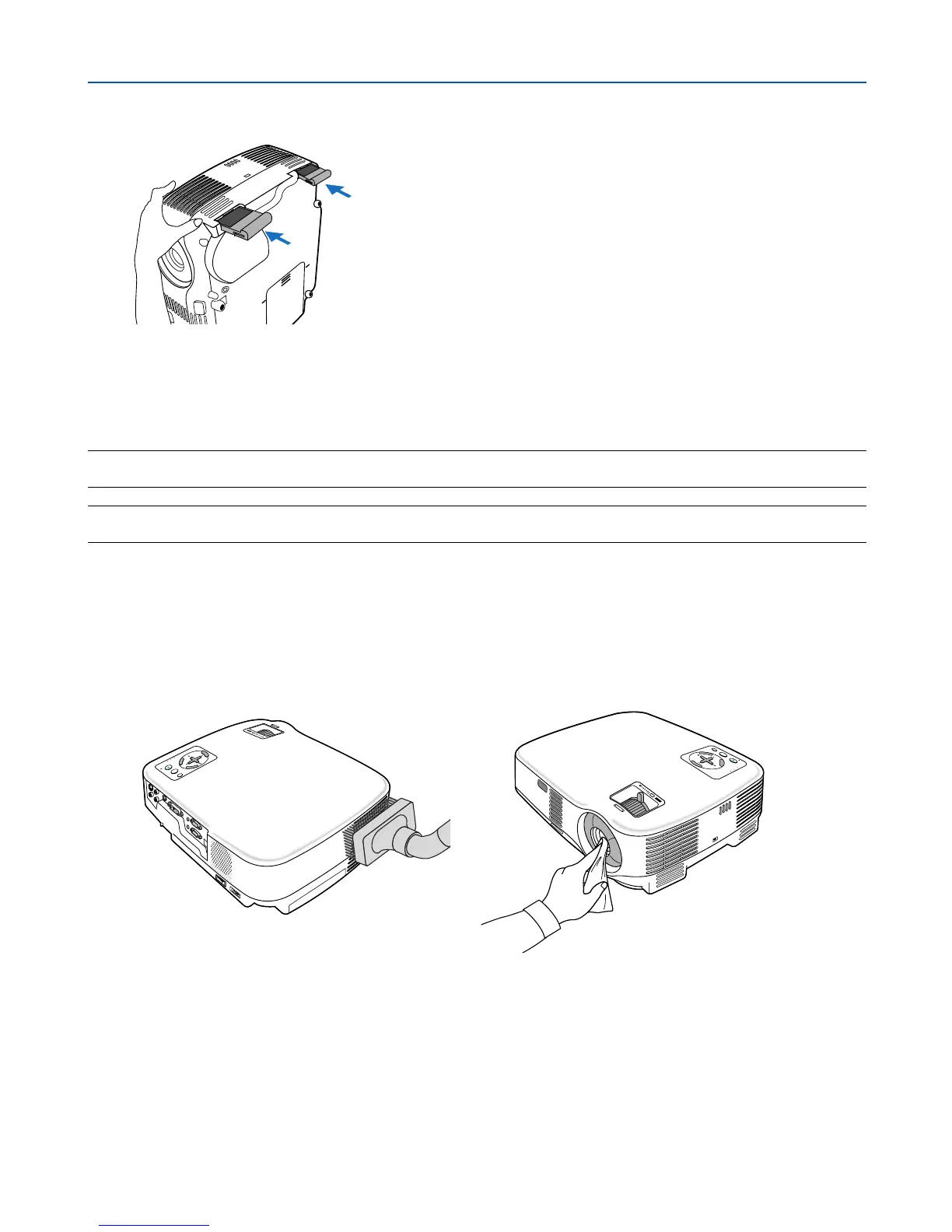 remove dust and dirt from the projector cabinet. Keep out dust and dirt during filter replacement.