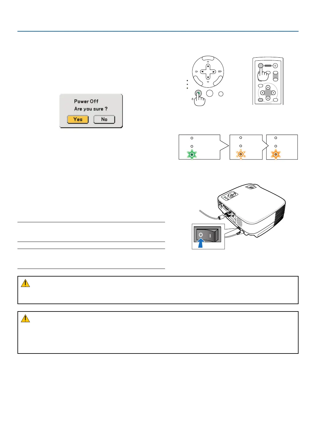 • The projector cannot be turned off for 60 seconds after the lamp is turned on and while the POWER indicator is
