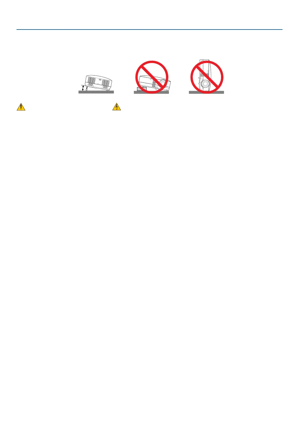The tilt angle of the projector should not exceed 10 degrees, nor should the projector be installed in any way other
