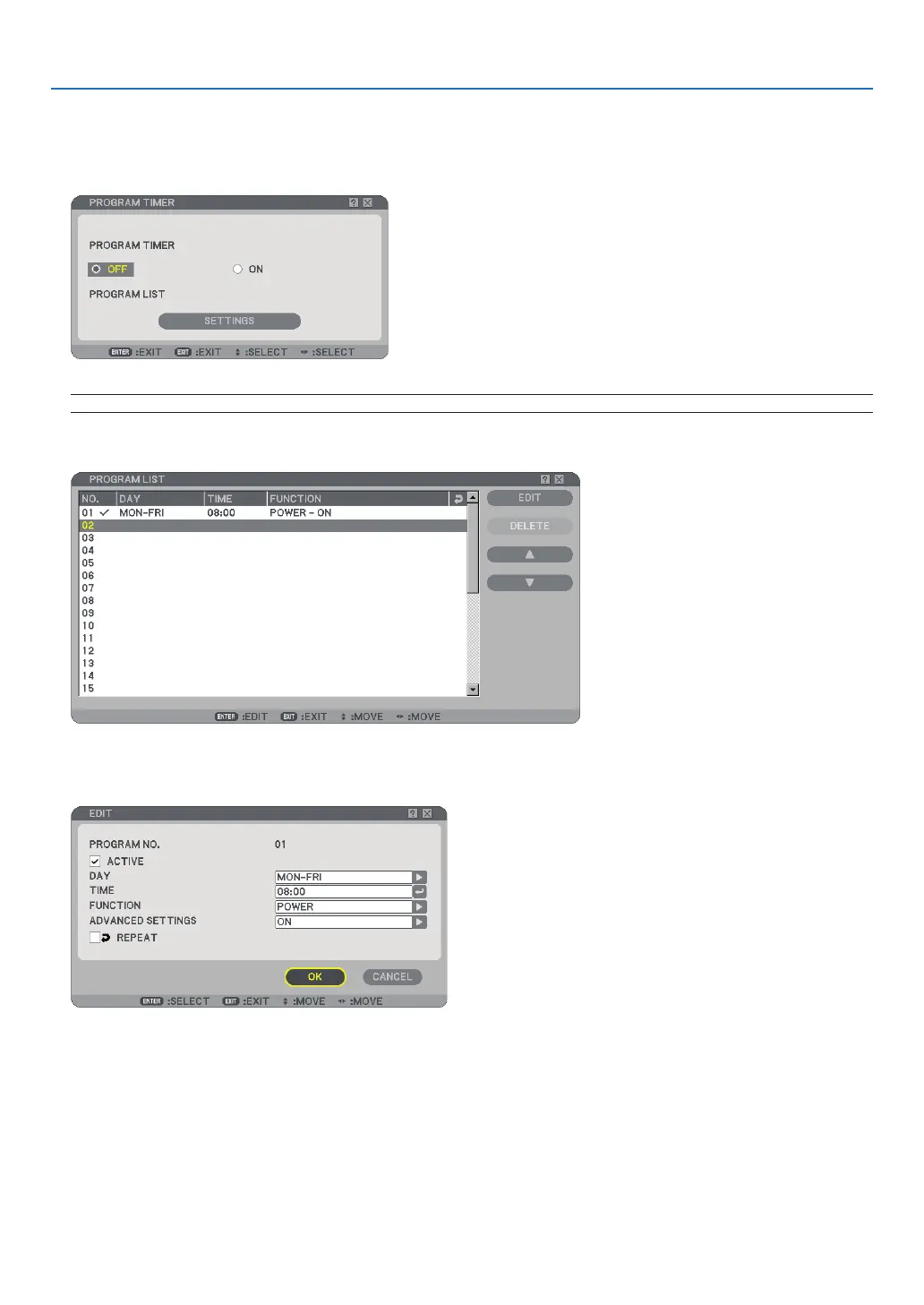 NOTE: When the Program Timer is turned on, the [PROGRAM LIST] cannot be edited.