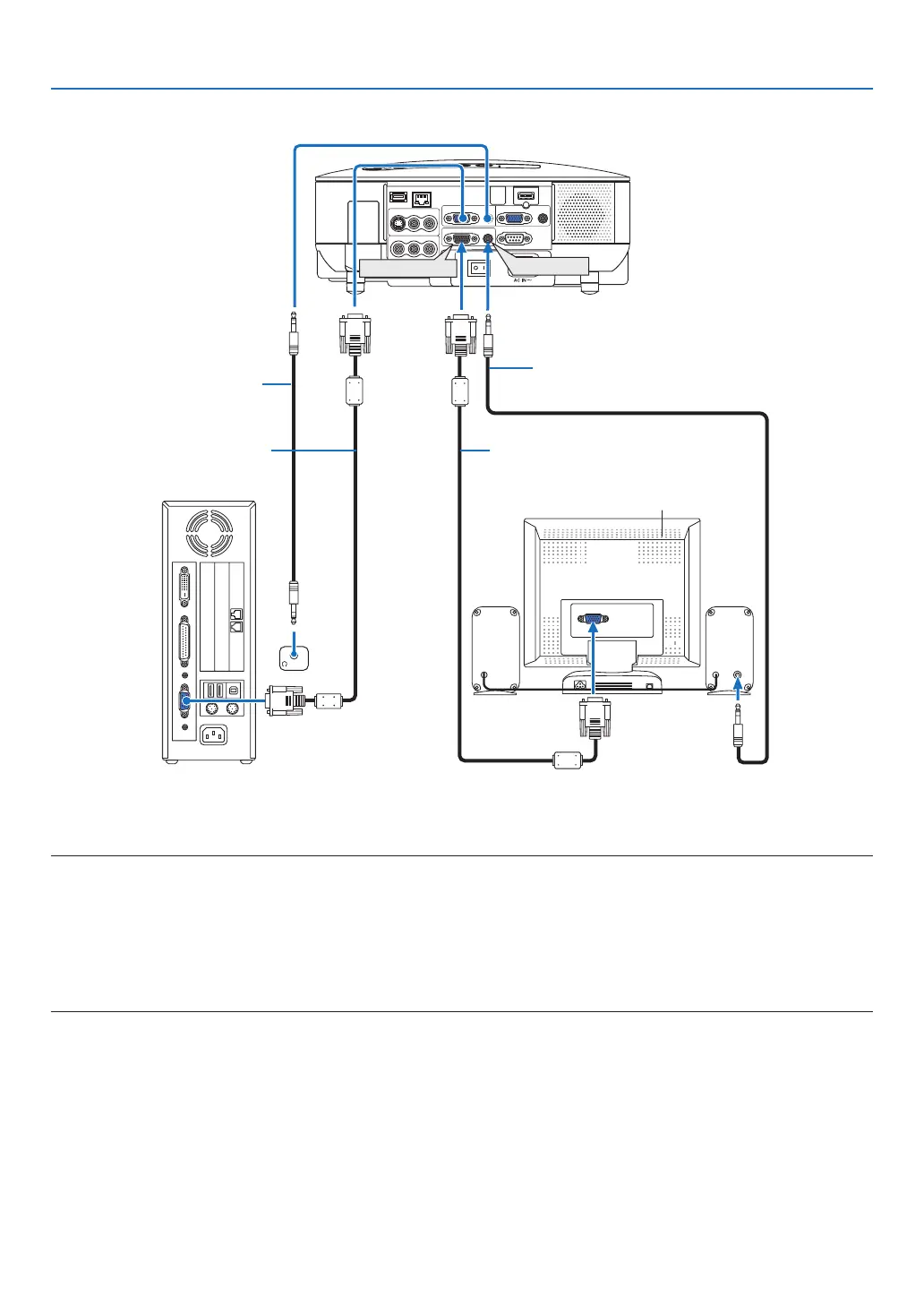 You can connect a separate, external monitor to your projector to simultaneously view on a monitor the RGB ana-