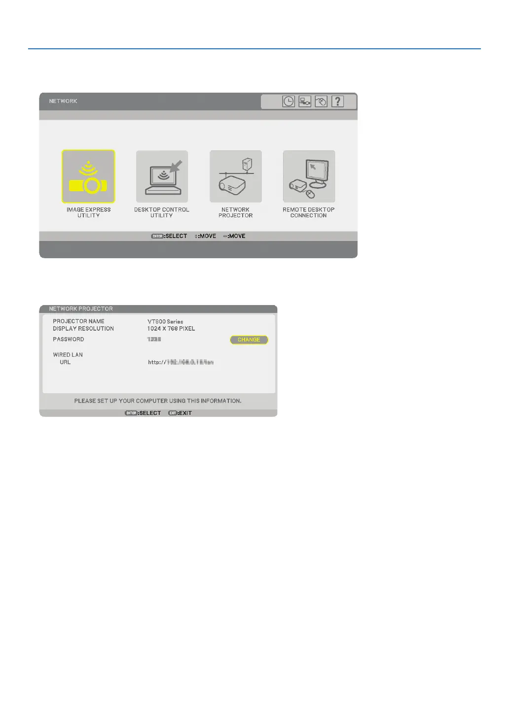 3. From the [NETWORK] menu, select [NETWORK PROJECTOR].