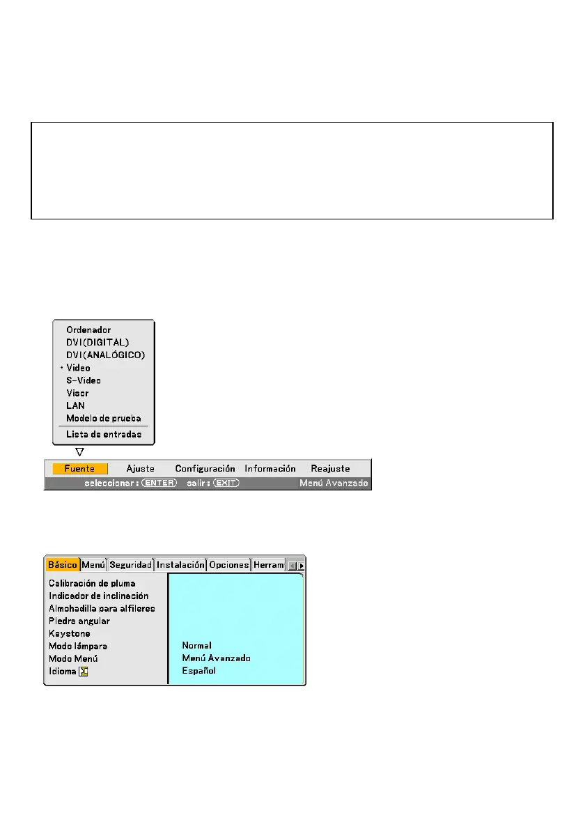 1. Pulse el botón MENU del mando a distancia o del proyector.