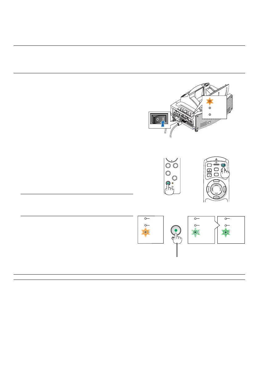 •Projektorn har två strömbrytare: huvudströmbrytaren och POWER (ON/STAND BY)-tangenten (POWER ON och OFF på