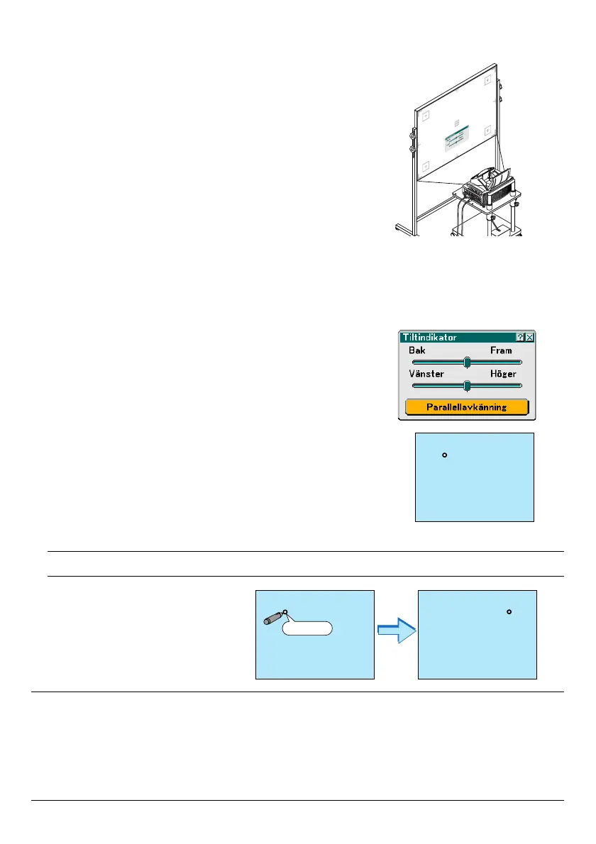 projektorn parallellt mot skärmen. För närmare anvisningar, se