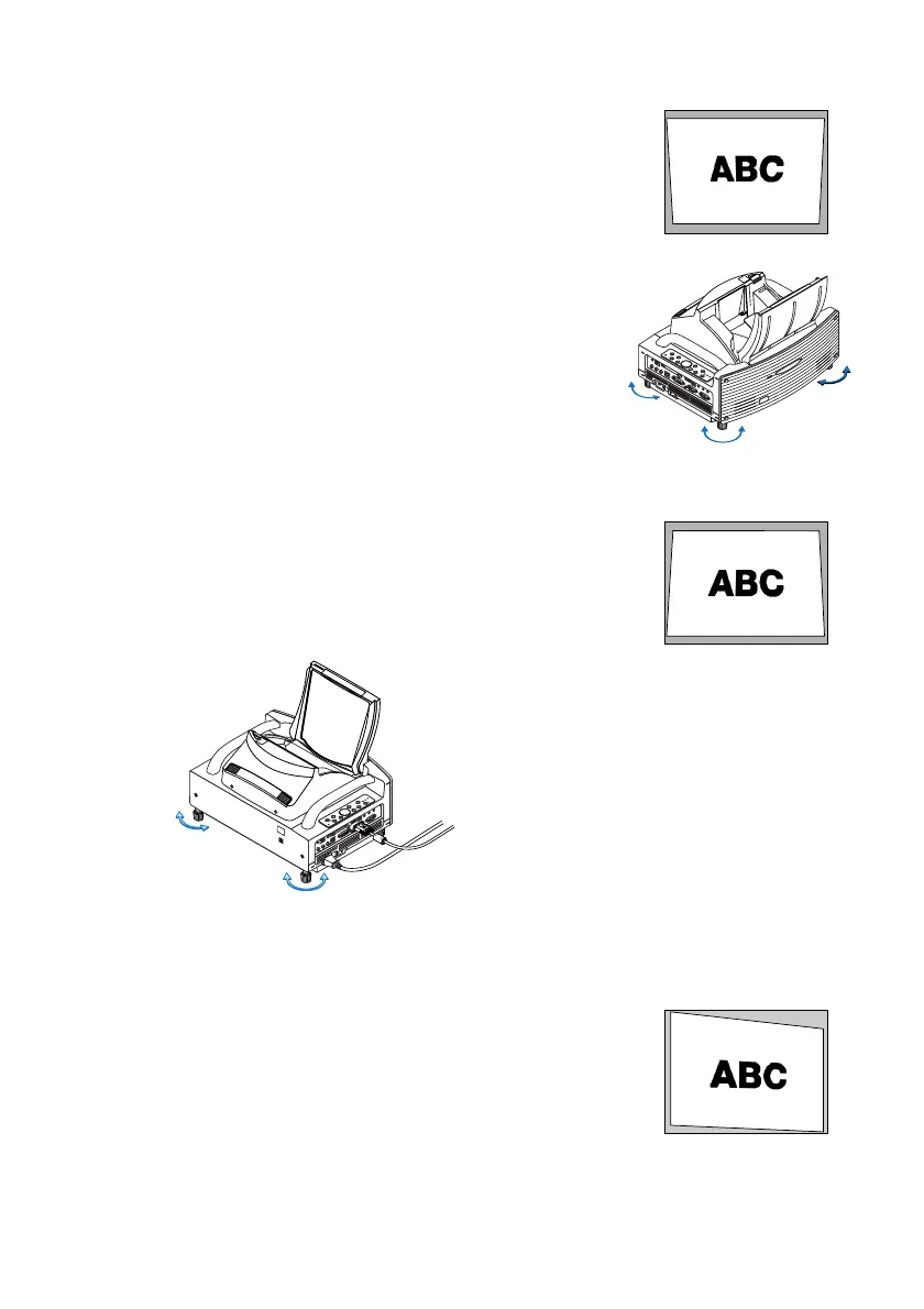 Tilt the top end of the screen to the front or rotate the front feet of the projector