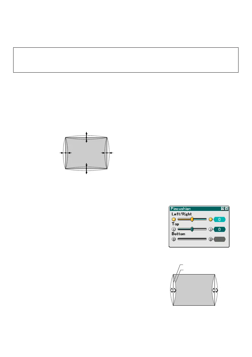 direction. When this projector is used with a 60-inch screen size, the amount of pincushion and barrel distortion