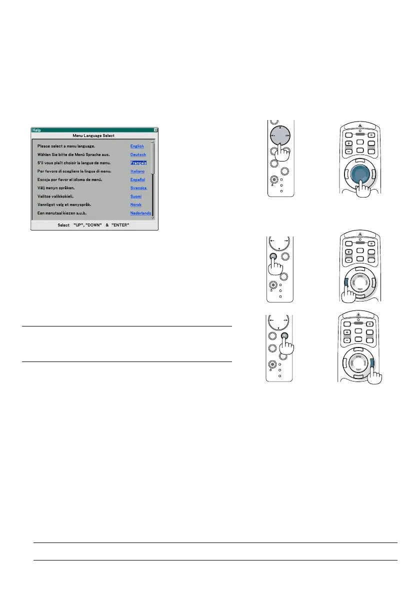 Remarque à propos de l’écran Startup (Ecran de sélection de la langue du menu)