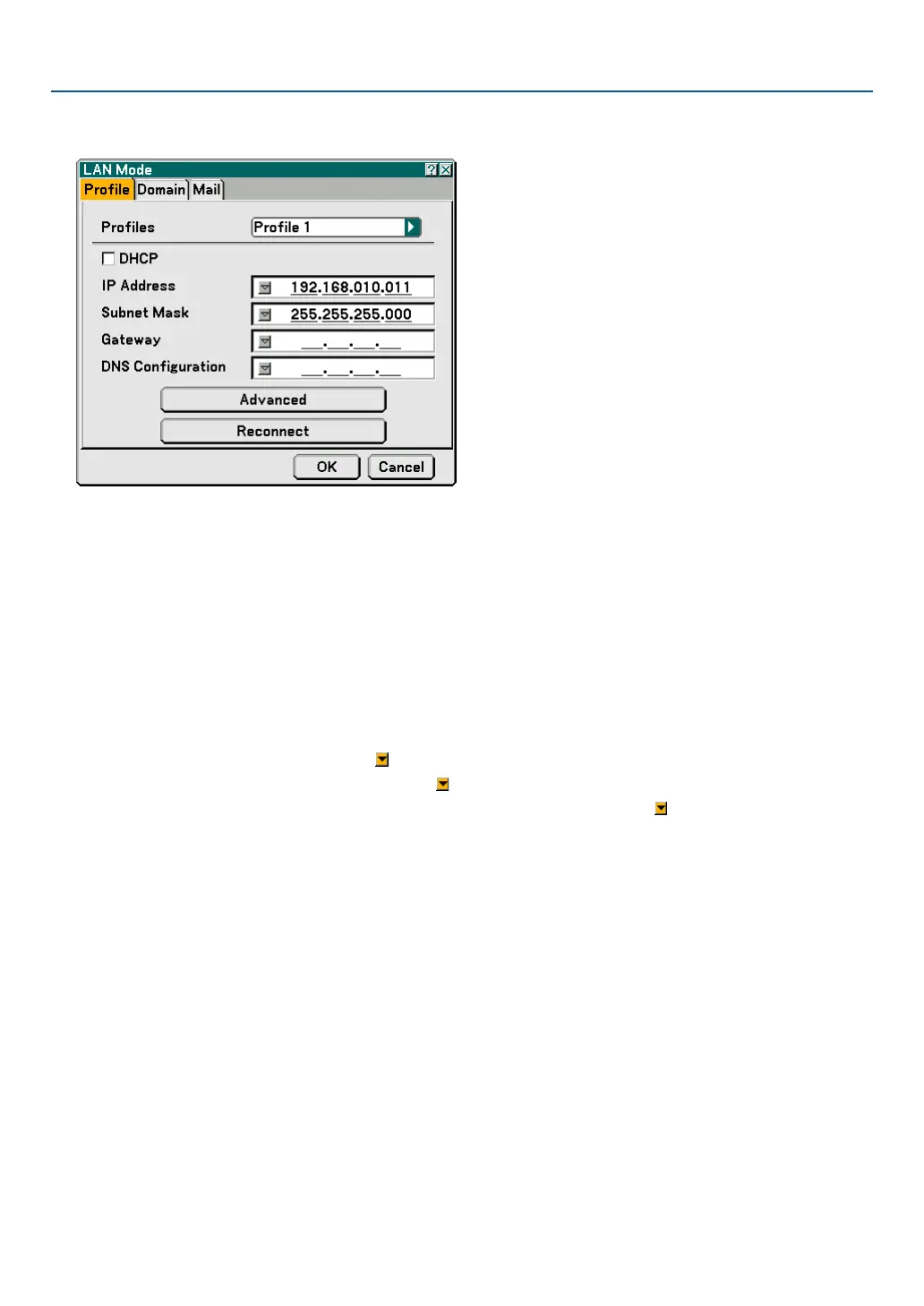 Select "Profile 1" or "Profile 2" and then do settings for "DHCP" and the other options.