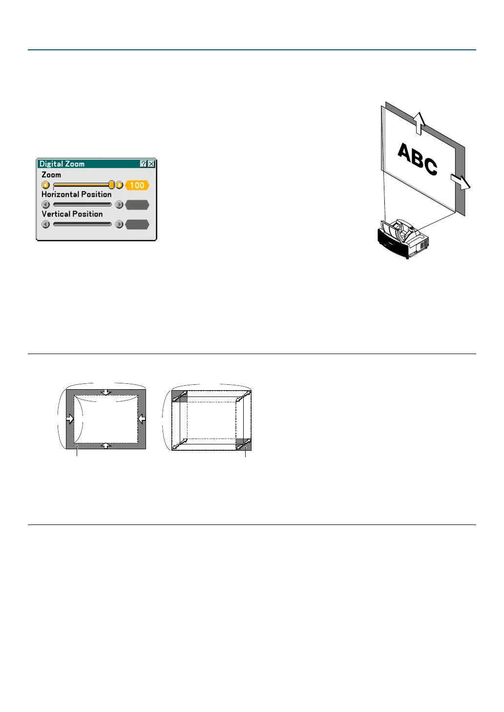 • When any adjustment is made to the “Cornerstone” or “Keystone” option, the “Digital Zoom” option is not available.