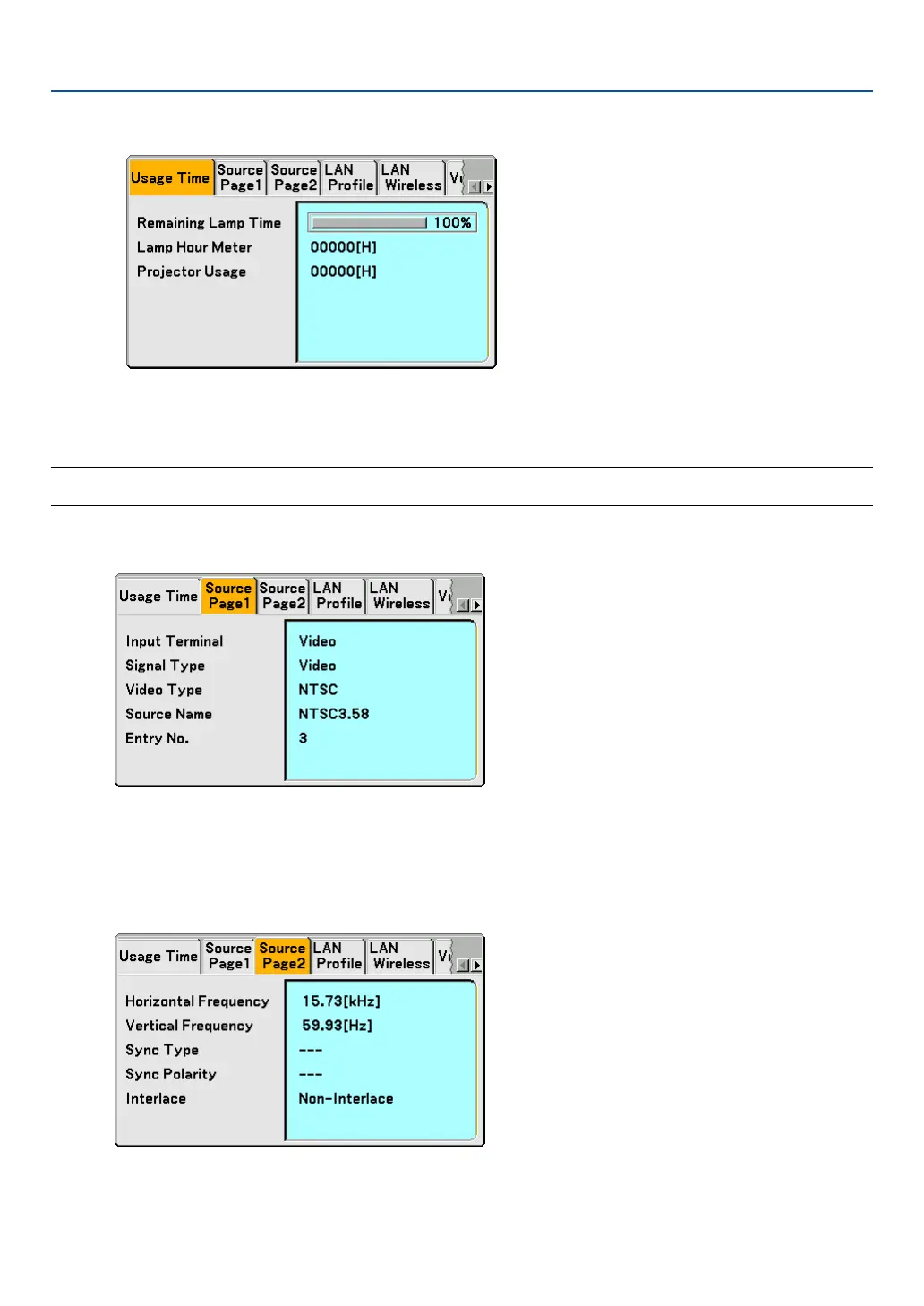 NOTE: The progress indicator shows the percentage of remaining lamp life. The value informs you of the amount of lamp and
