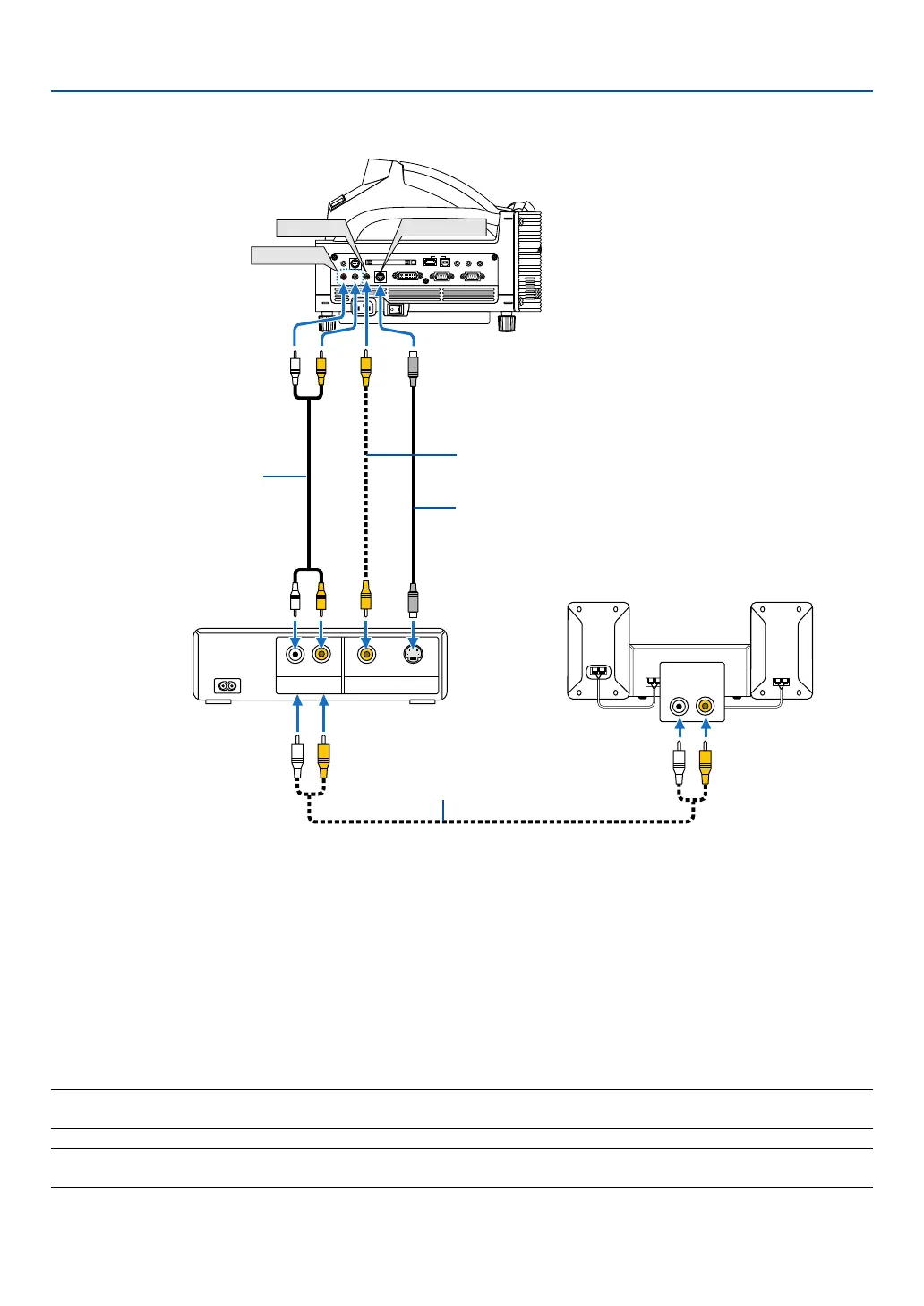 Use common RCA cables (not provided) to connect your VCR, laser disc player or document camera to your projector.