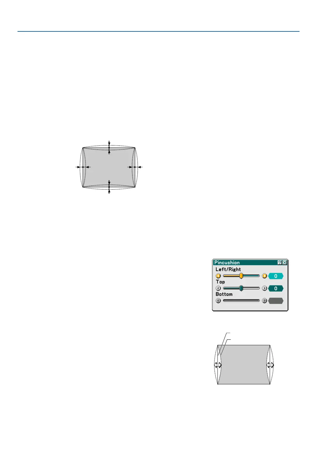 direction. When this projector is used with a 60-inch screen size, the amount of pincushion and barrel distortion