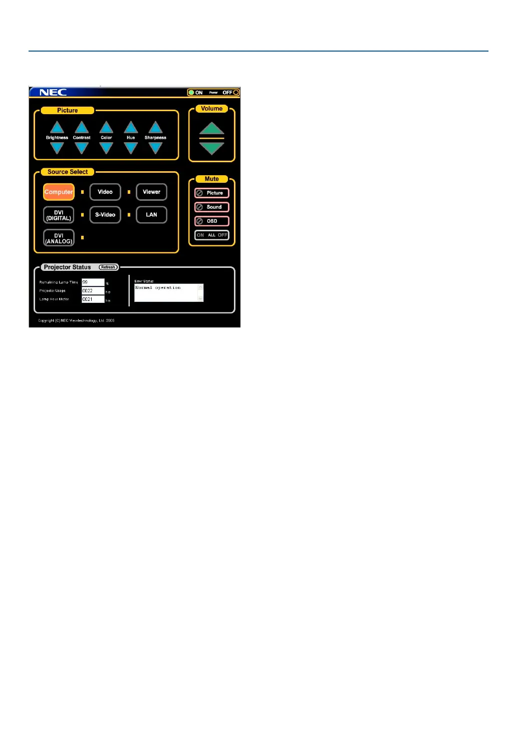 Picture: Controls the video adjustment of the projector.