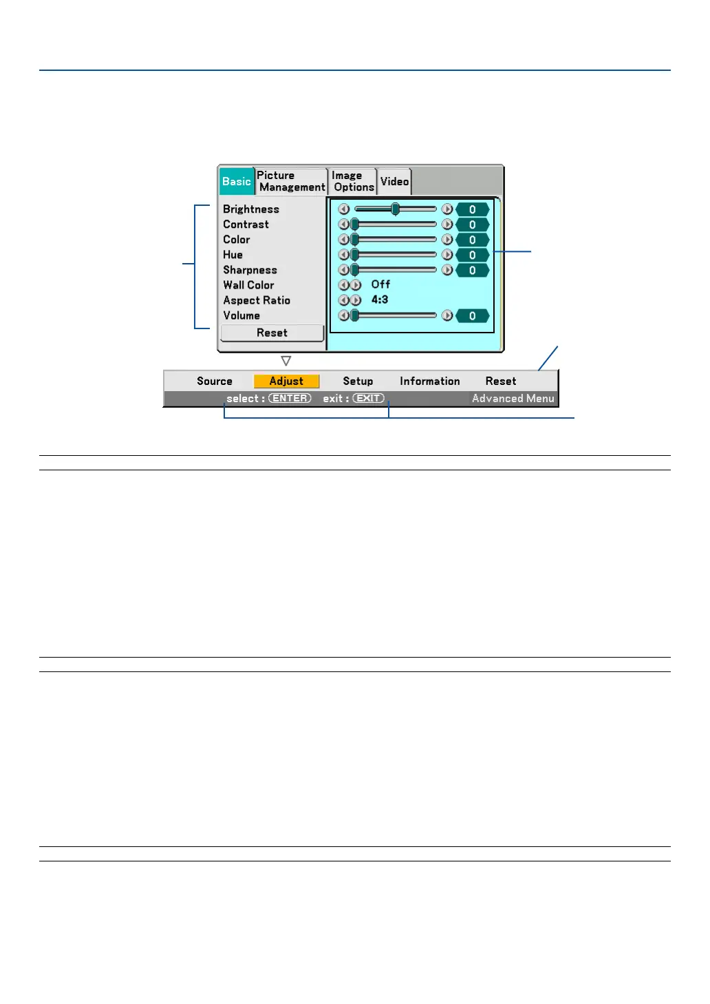 7. Repeat steps 2 -6 to adjust an additional item, or press the EXIT button on the remote control or the