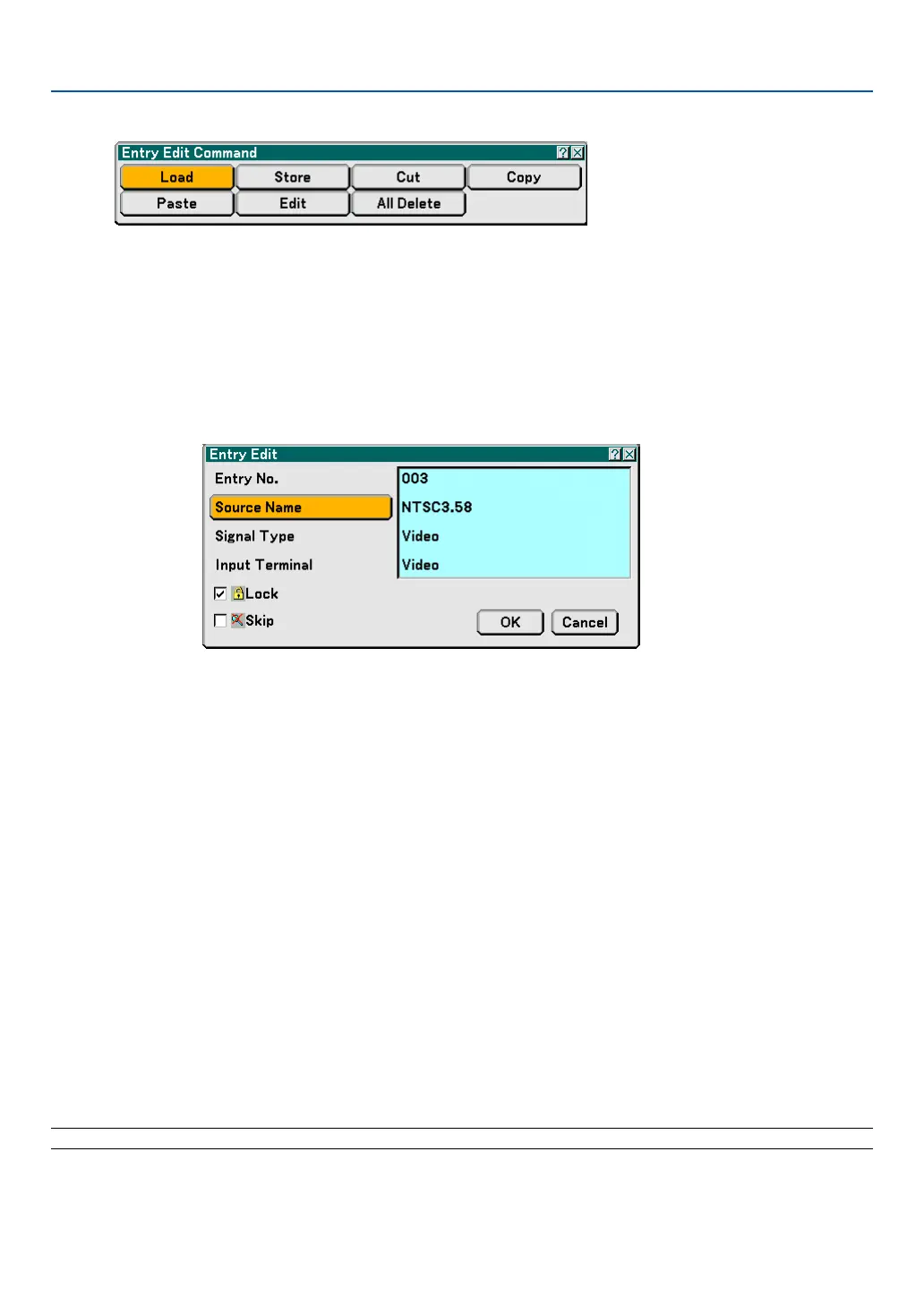 Copy ...................... Enables you to copy a selected signal from the list and place it on the "clipboard" in the projector.