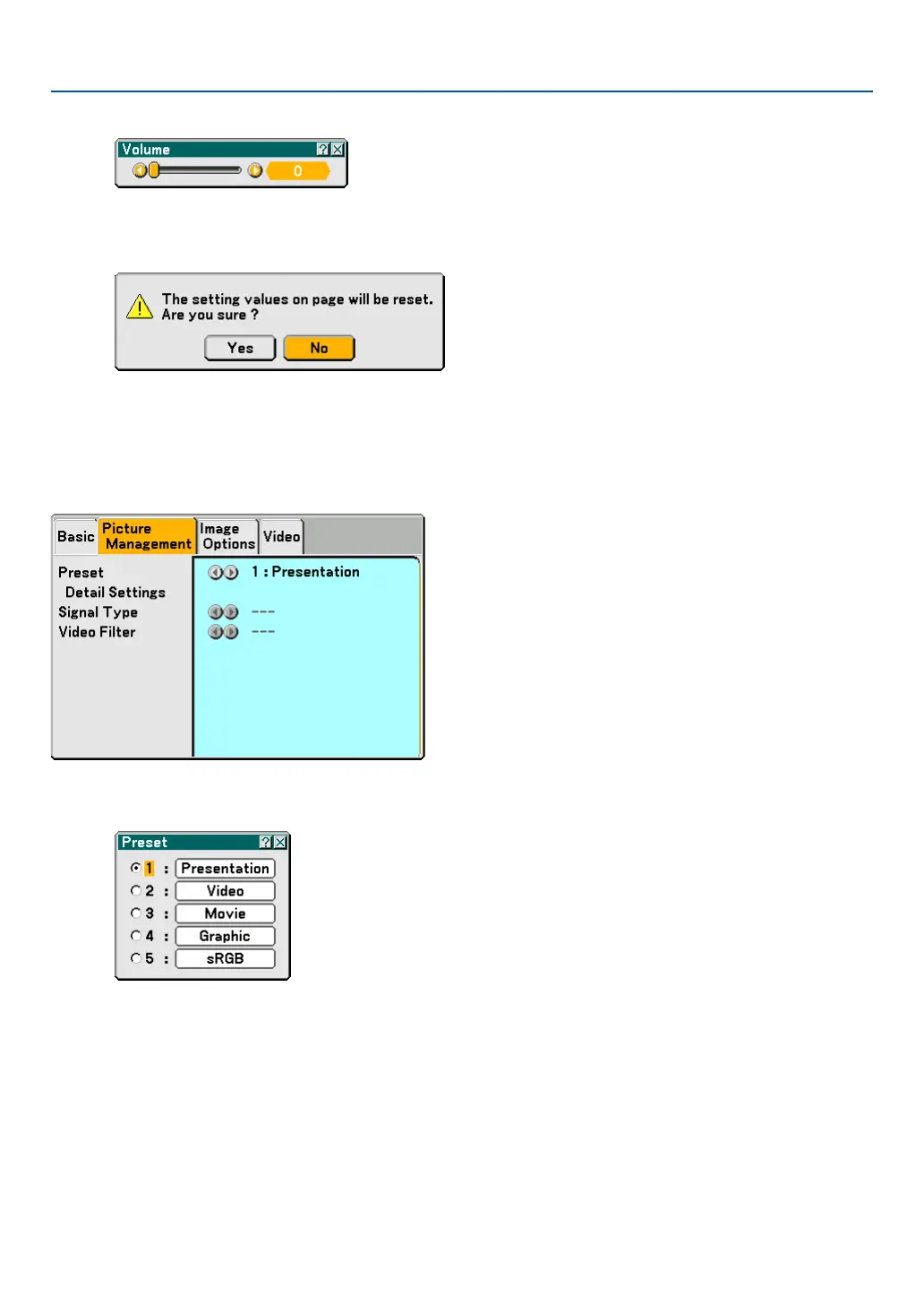 The message "The setting values on page will be reset. Are you sure?” will be displayed.