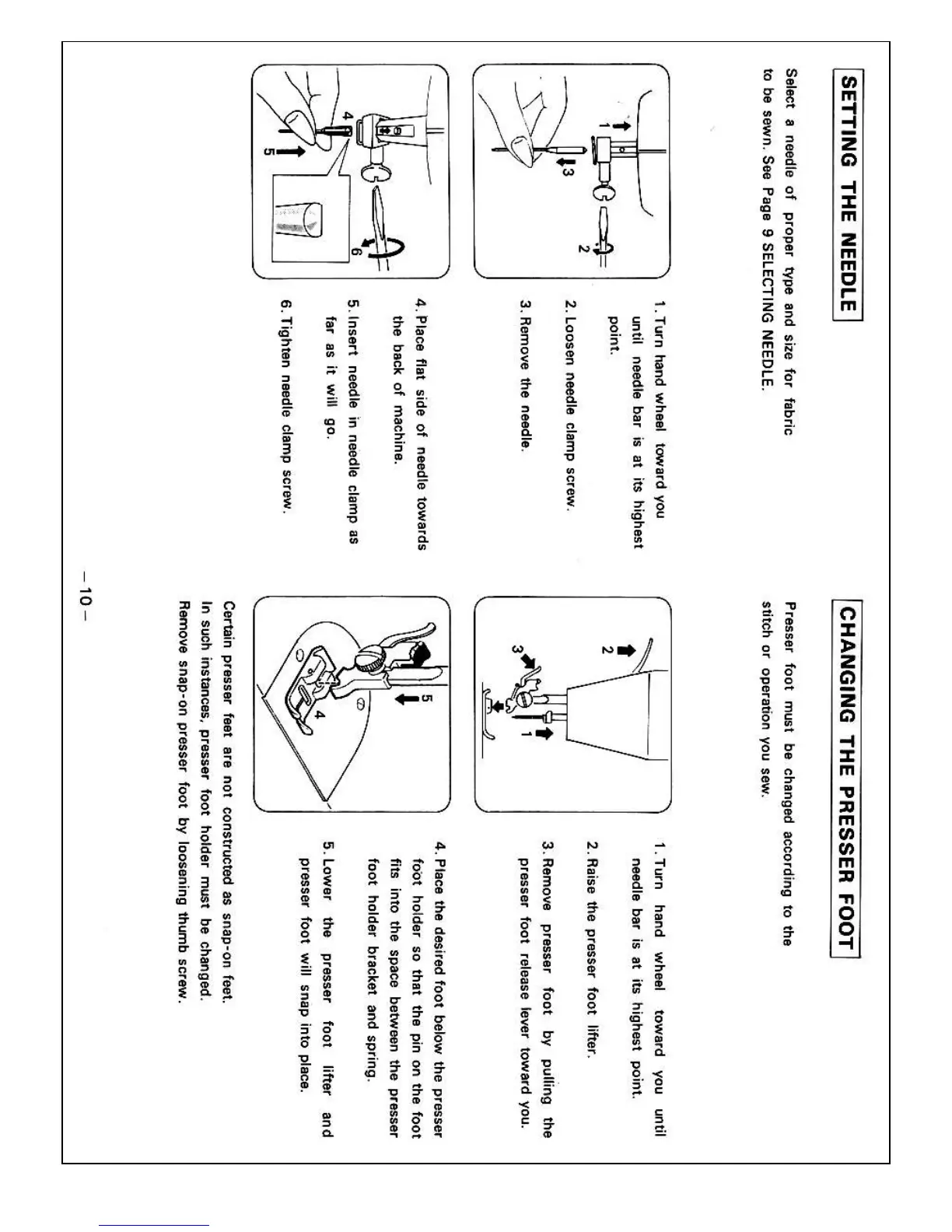 Necchi 535 FA - Needle and Foot Handling; SETTING THE NEEDLE; CHANGING THE PRESSER FOOT