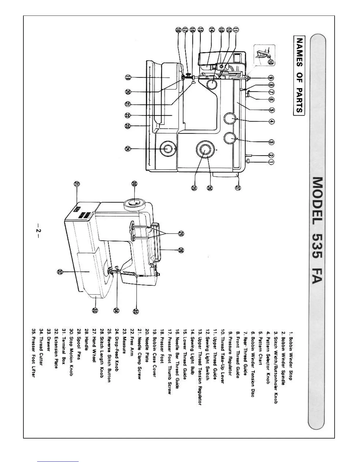 Necchi 536 FB - Names of Parts: Model 535 FA