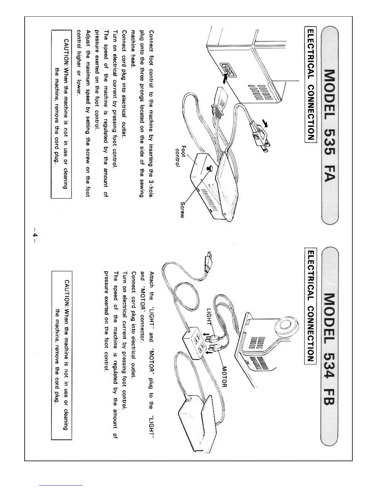 Necchi 537FA - Electrical Connection Procedures; Connecting Power and Foot Control