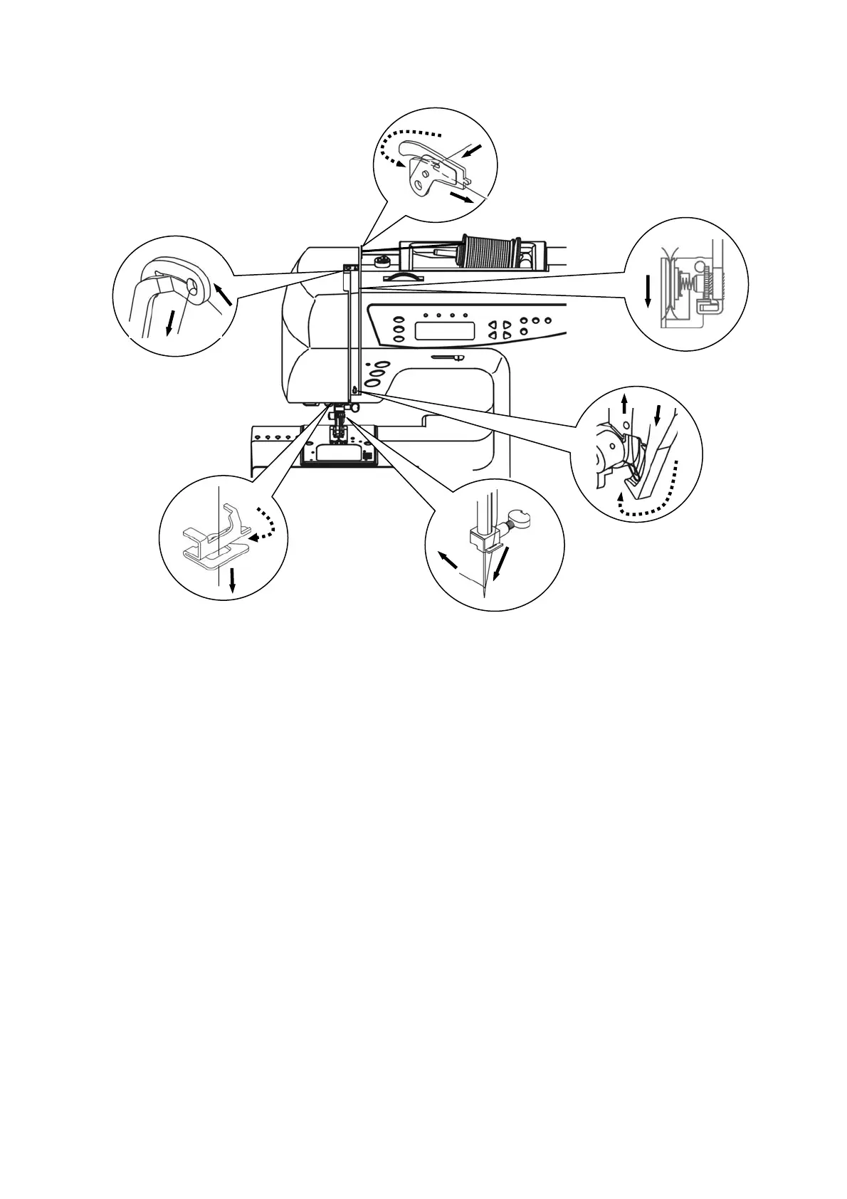 THREADING UPPER THREAD / ENHEBRADO SUPERIOR / ENFILAGE DU FIL D’AIGUILLE