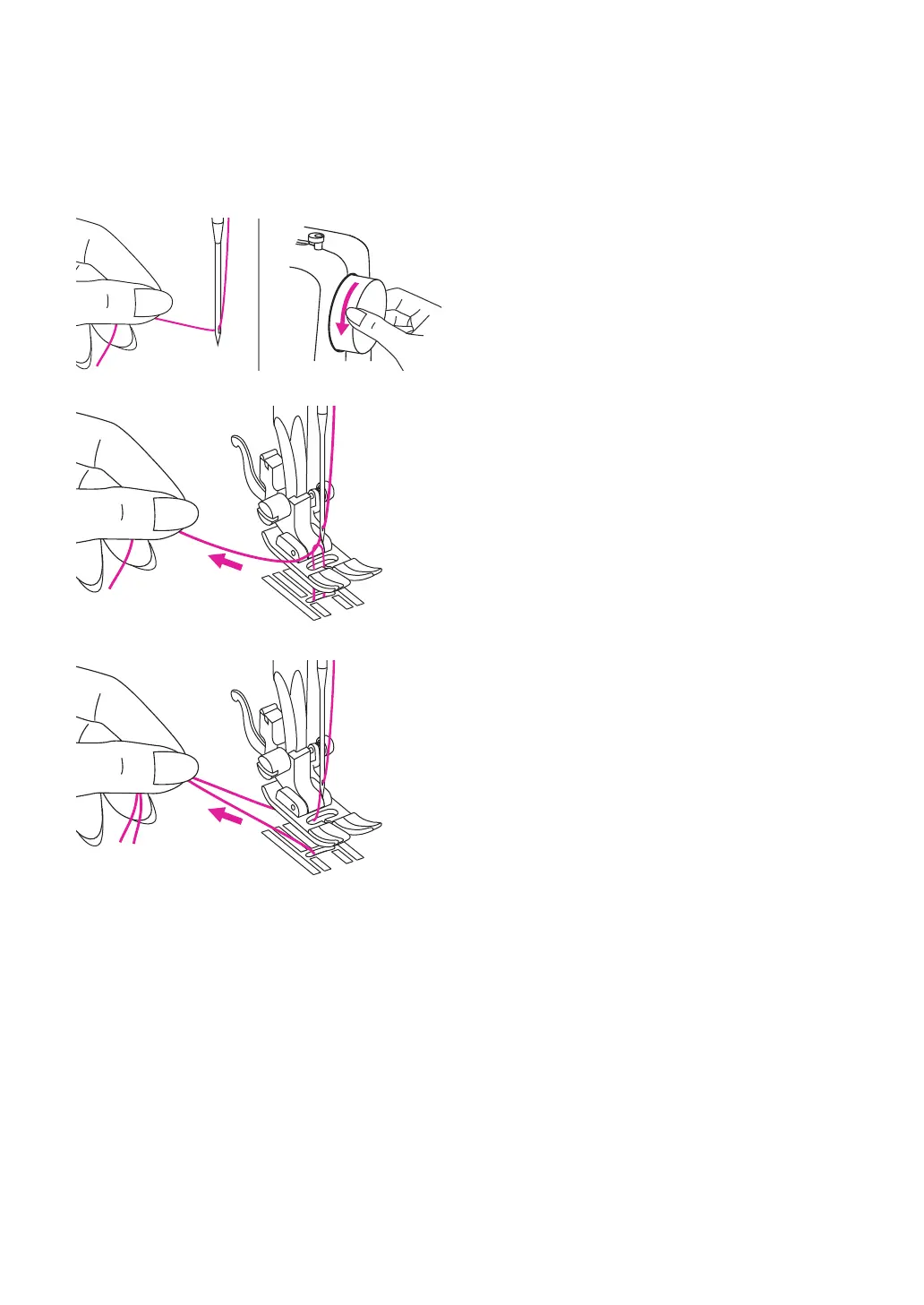 When sewing gathering or smocking stitch, bring up the bobbin thread rst as below
