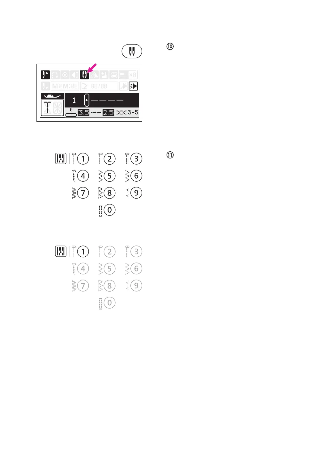 Press the twin needle button, the LCD screen