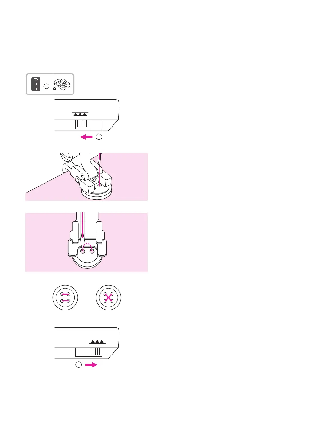 Buttons can be sewn on with the sewing machine. Buttons with 2 or 4 holes can be