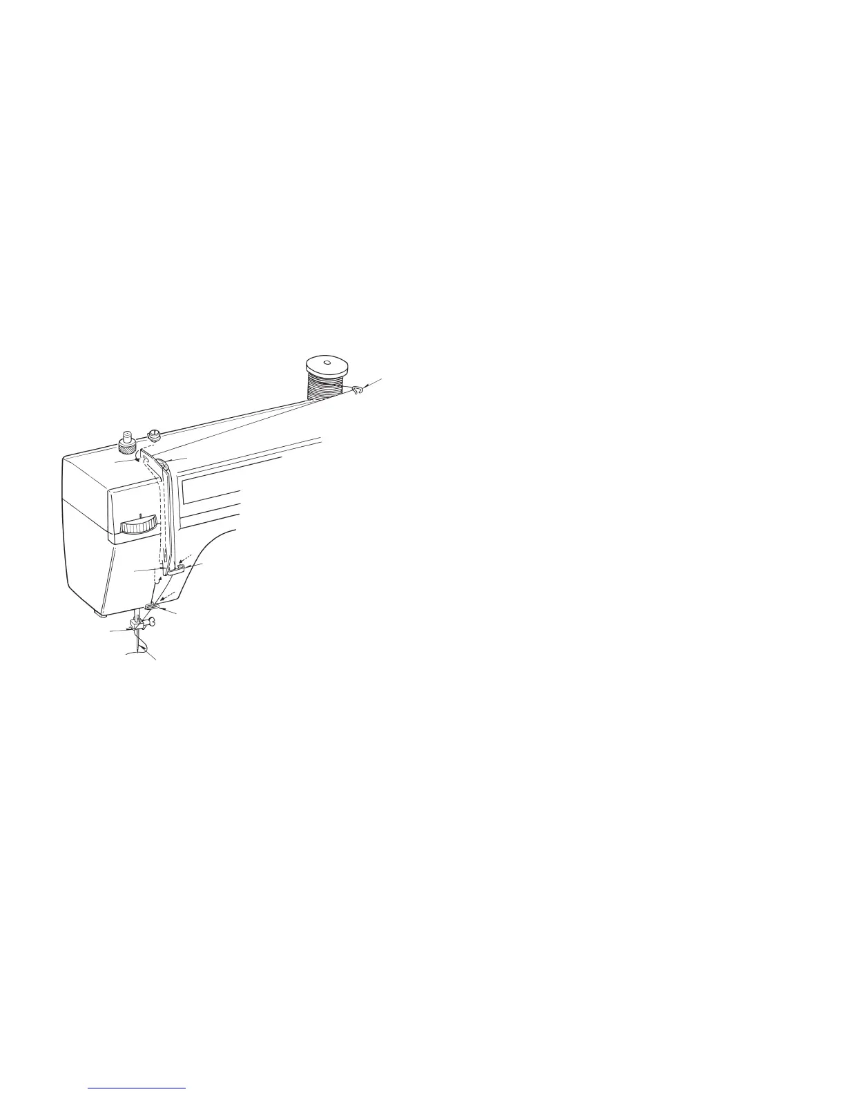 Raise the presser foot with presser foot lifter and pass the thread in the order