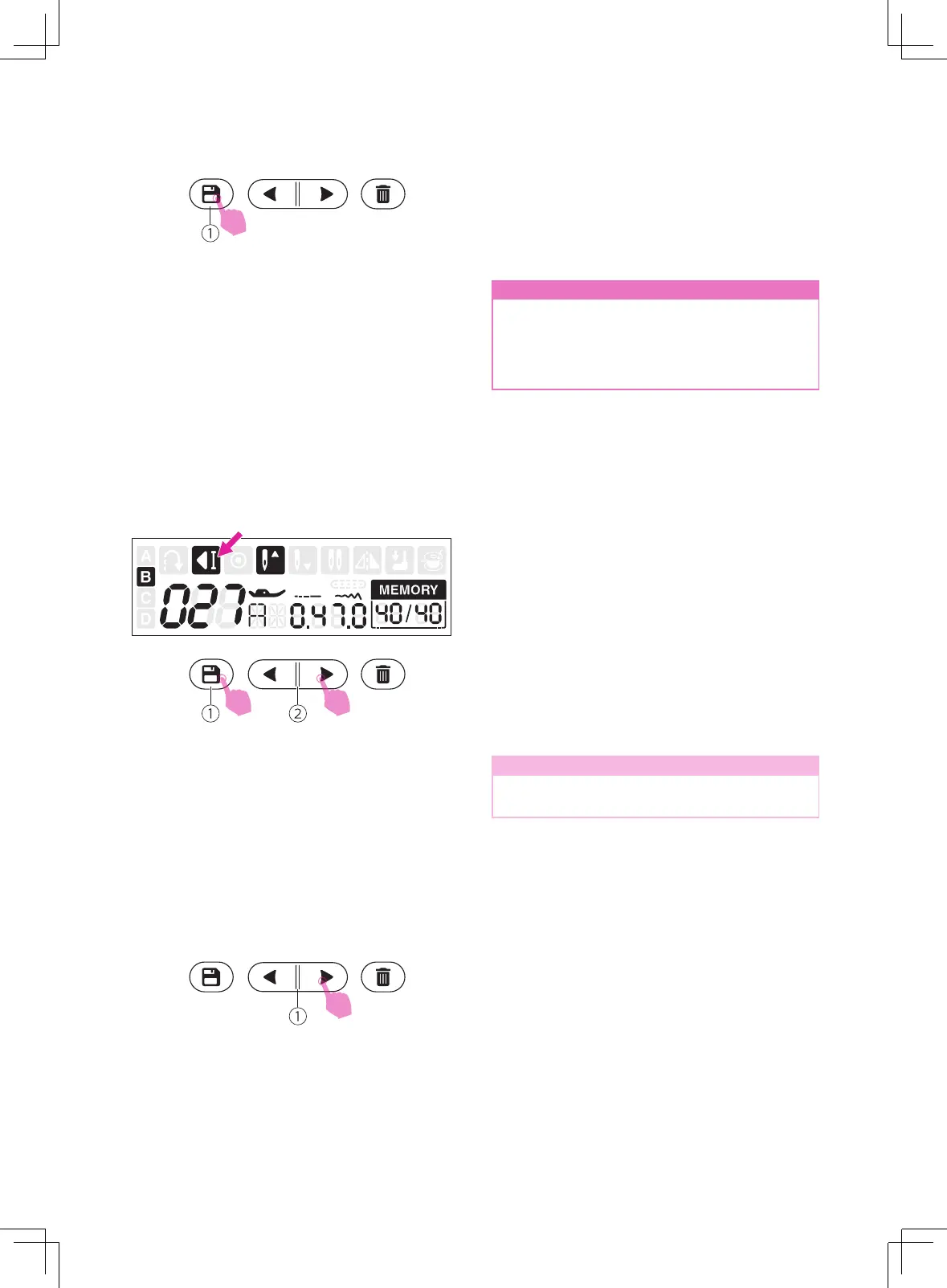Press the memory button to save the stitches