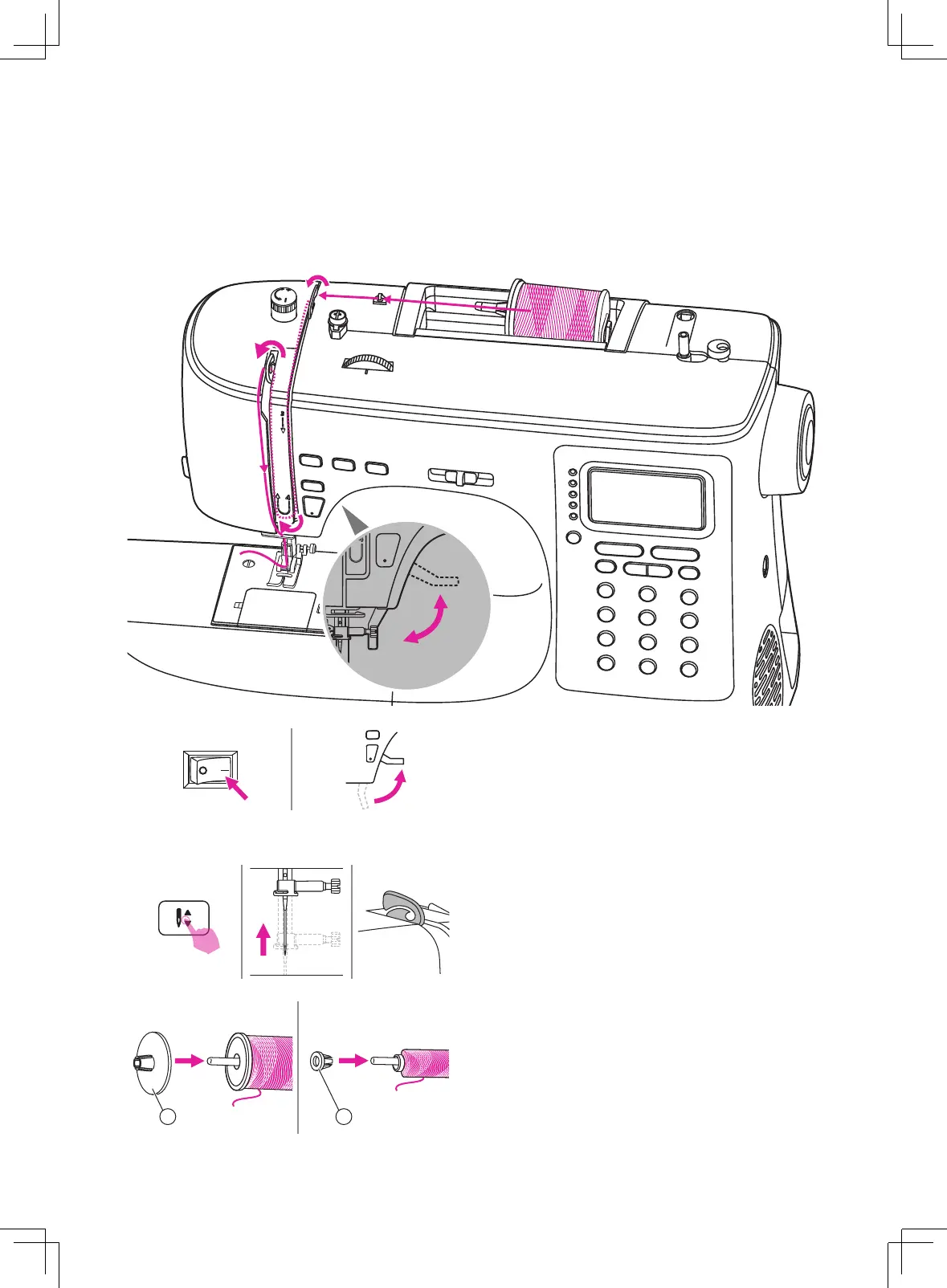 3. Place the thread and spool holder onto