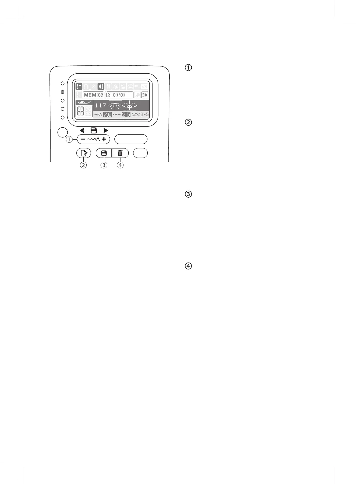"-" to selected the memorized stitch.