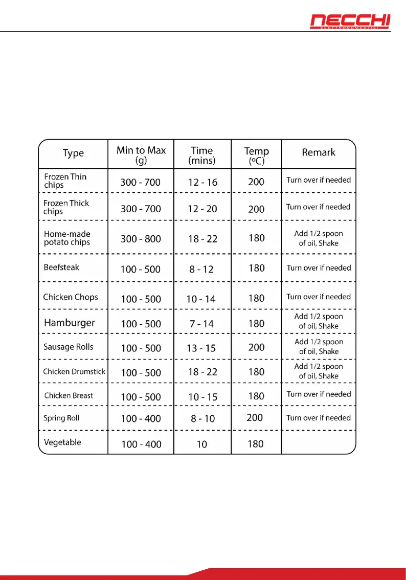 cooking time may vary depending on the dierent types of food. For