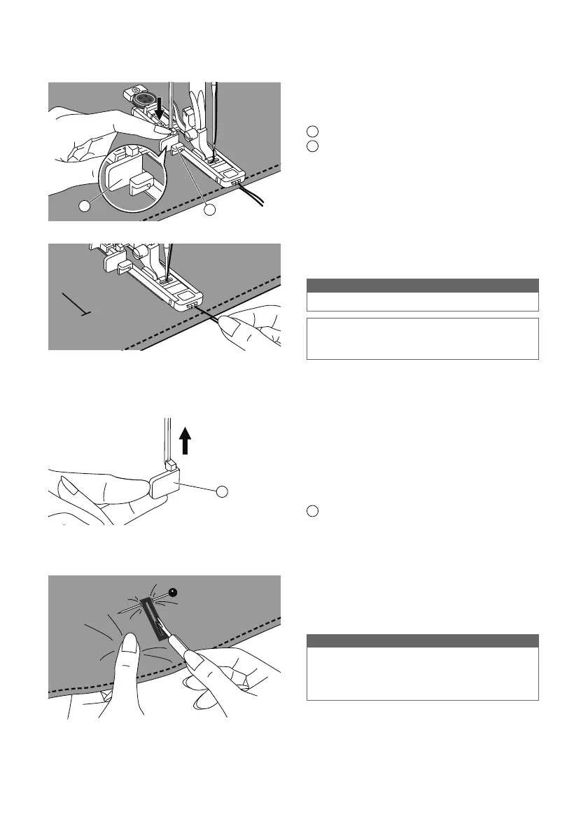 Raise the presser foot and cut the thread.