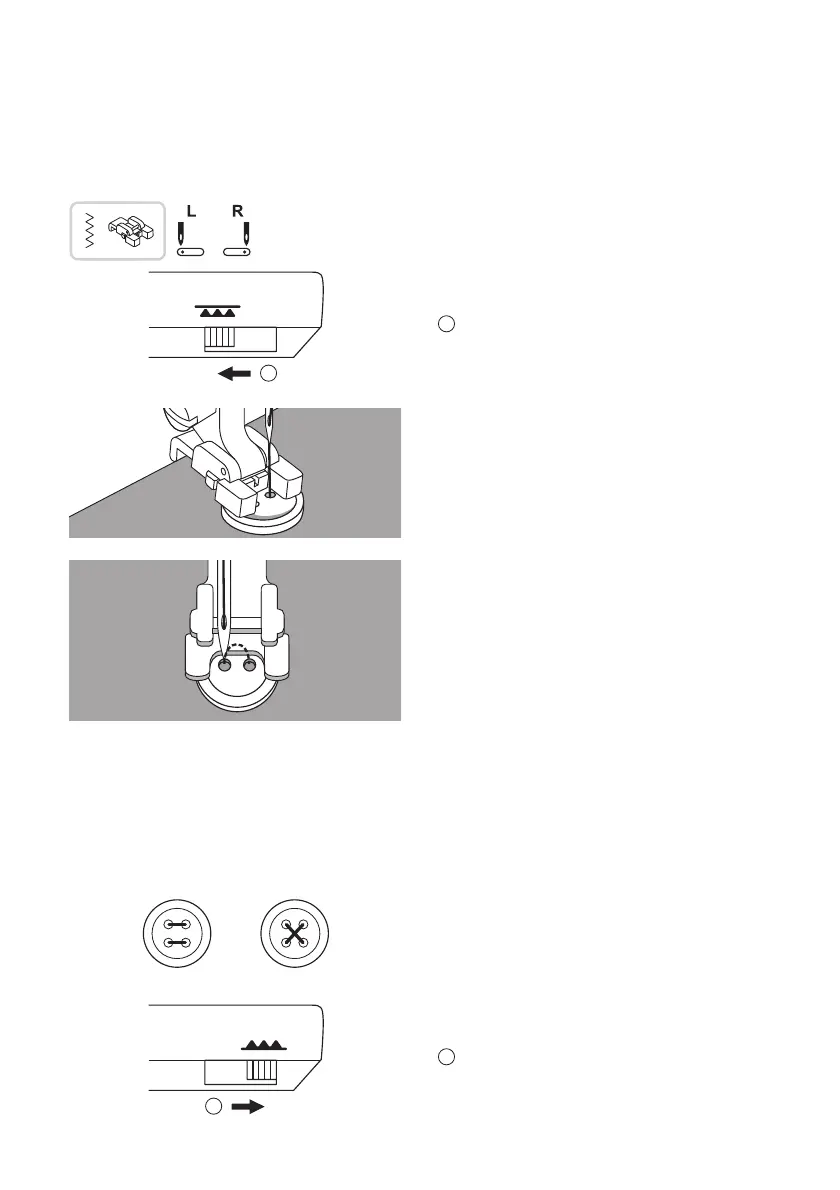 Buttons can be sewn on with the sewing machine. Buttons with 2 or 4 holes can be