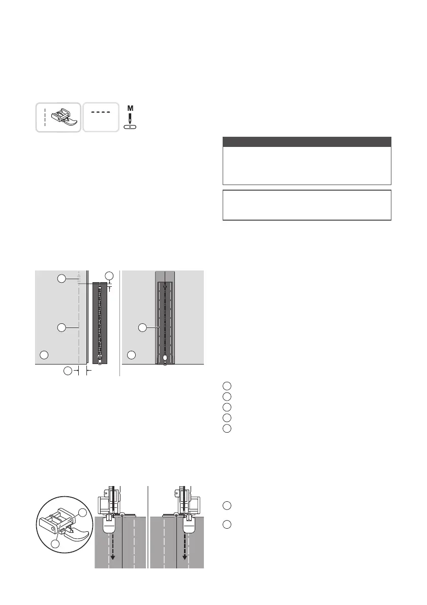 This foot can be set to sew on each side of the zipper, the edge of the foot guides the