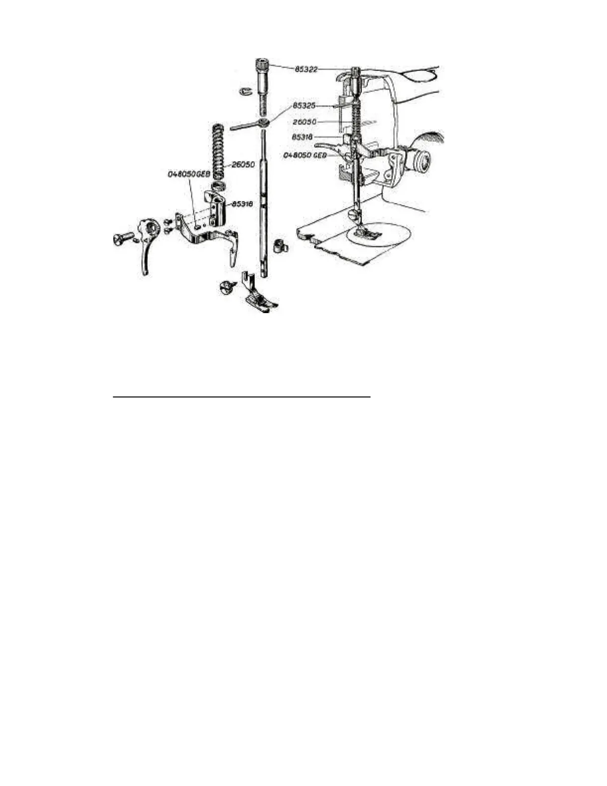 Slightly loosen the presser bar screw No. 048050 GEB in the