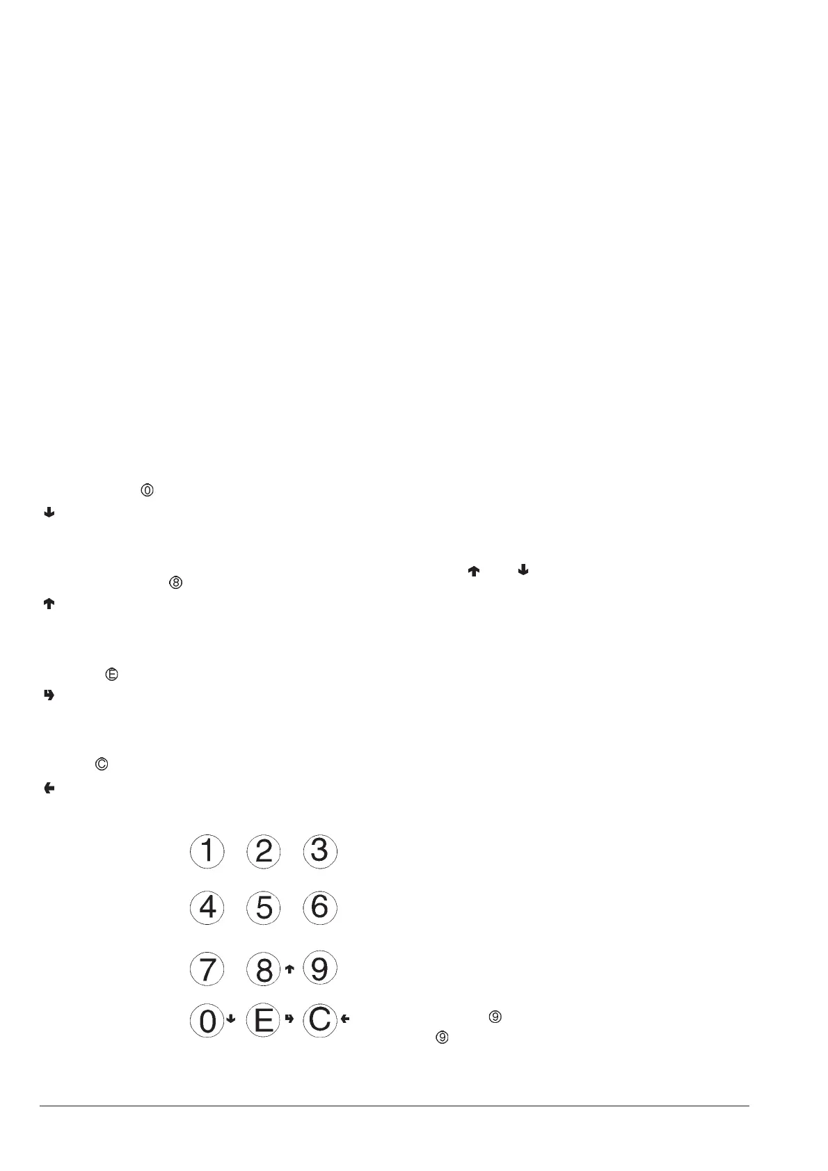keys from 0 to 9, having with the following functions in