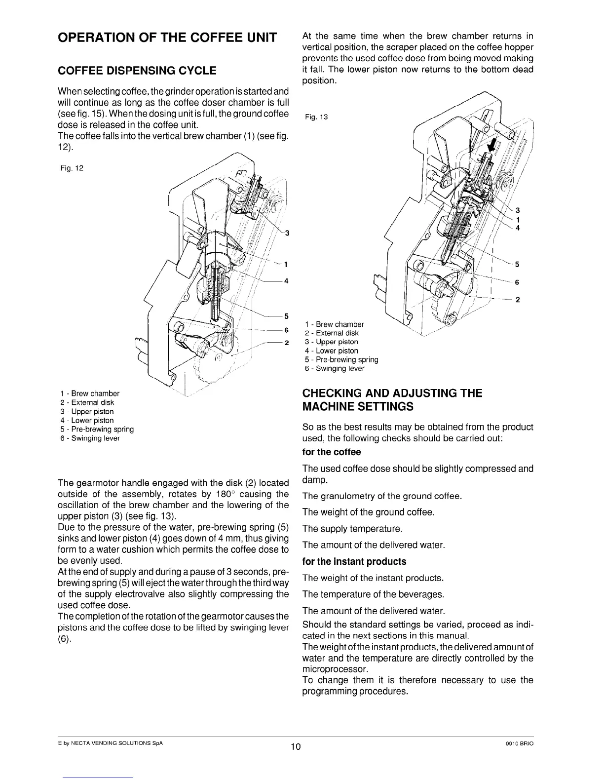 Necta BRIO - Operation of the Coffee Unit; Coffee Dispensing Cycle Details