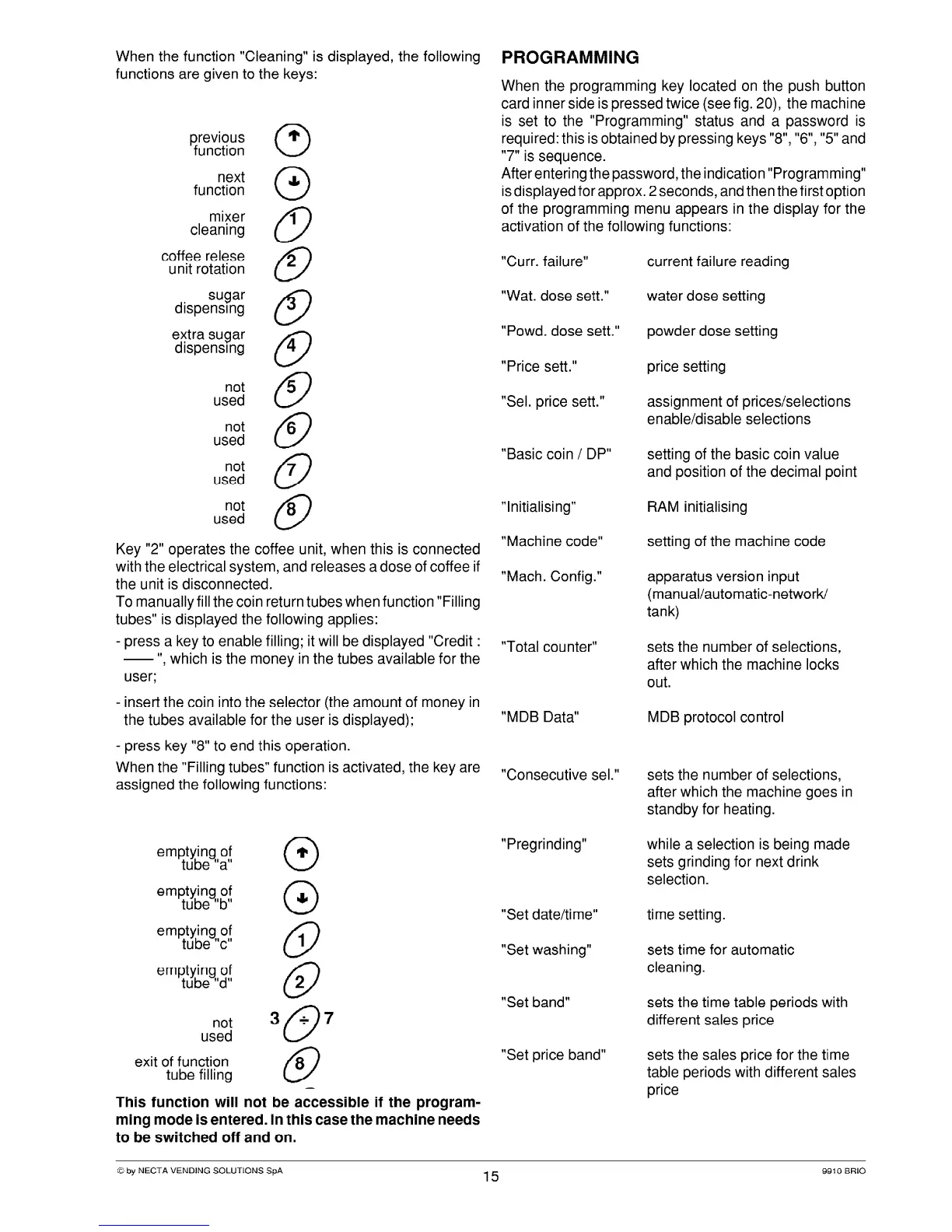 Necta BRIO - Programming and Configuration; Programming Menu Functions