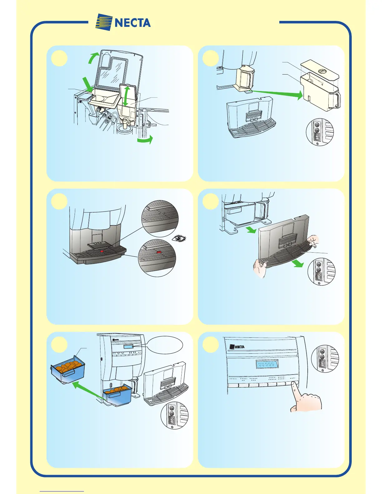 • Lift the lid and open the instant powder container’s lid (A).