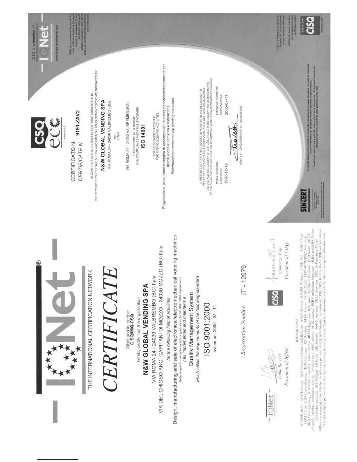 Necta KORO Fresh Brew - TECHNICAL SPECIFICATIONS AND OPTIONS; Electrical Specifications