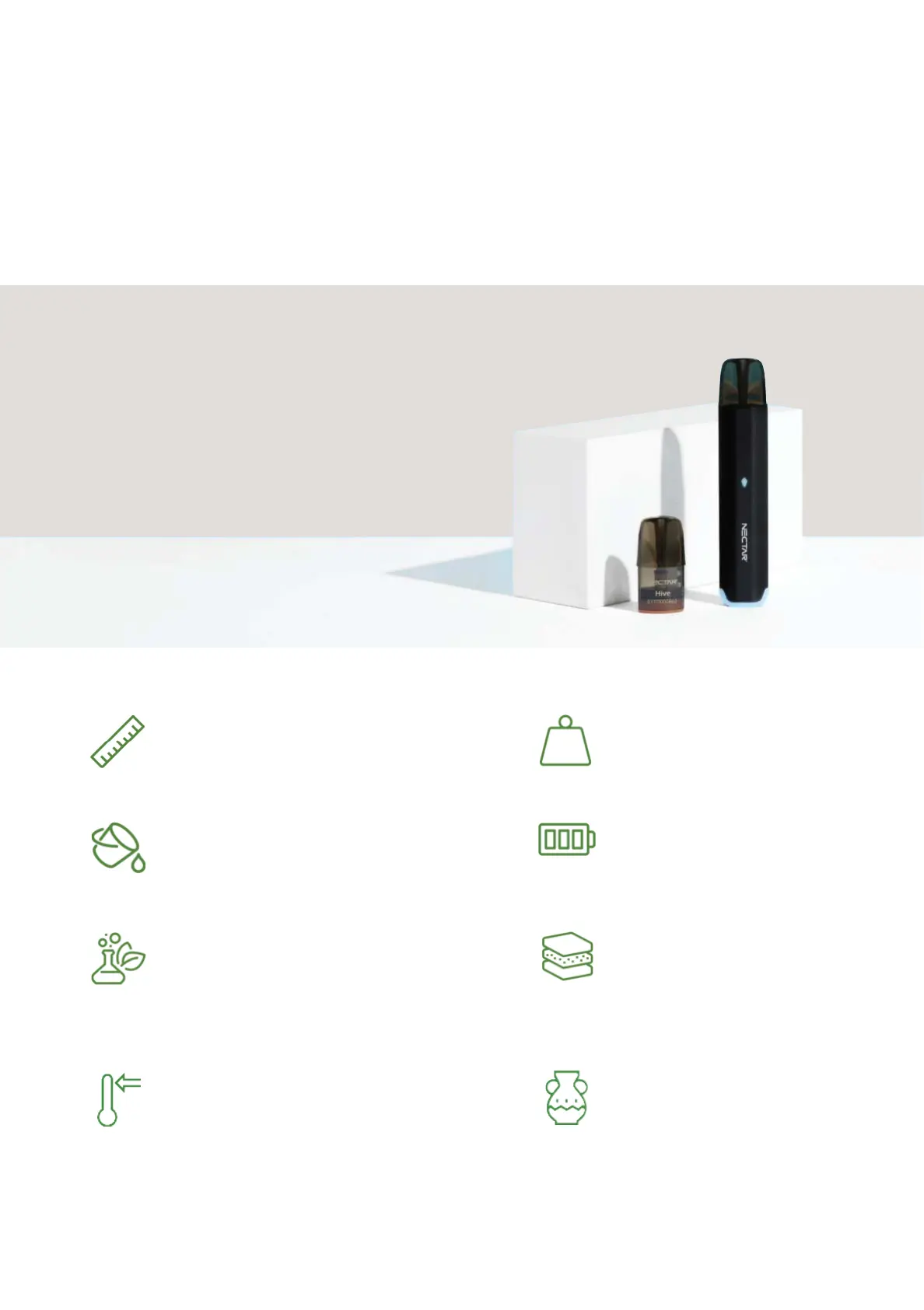 Nectar Hive - Device Specifications; Dimensions; Colour Options; Compatible Ingredients