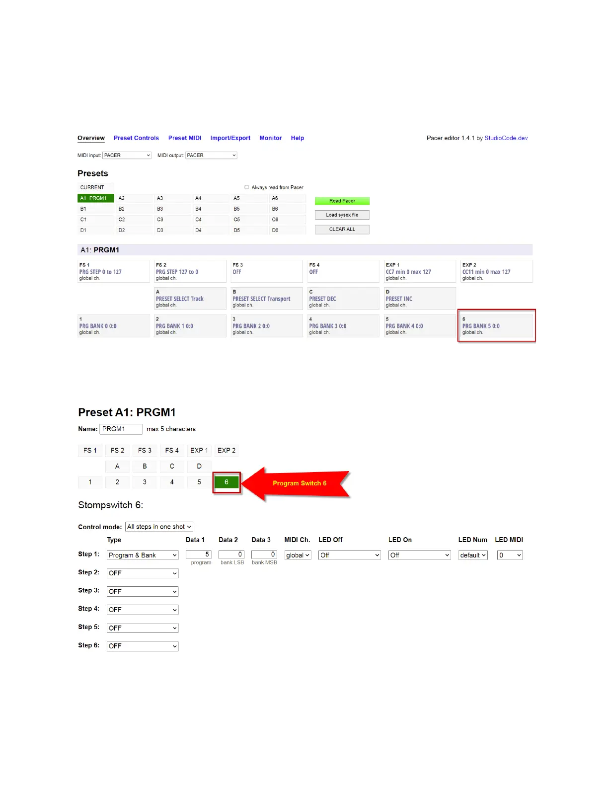 Here is an example of how to program Switch 6 on the Pacer using the online Editor.
