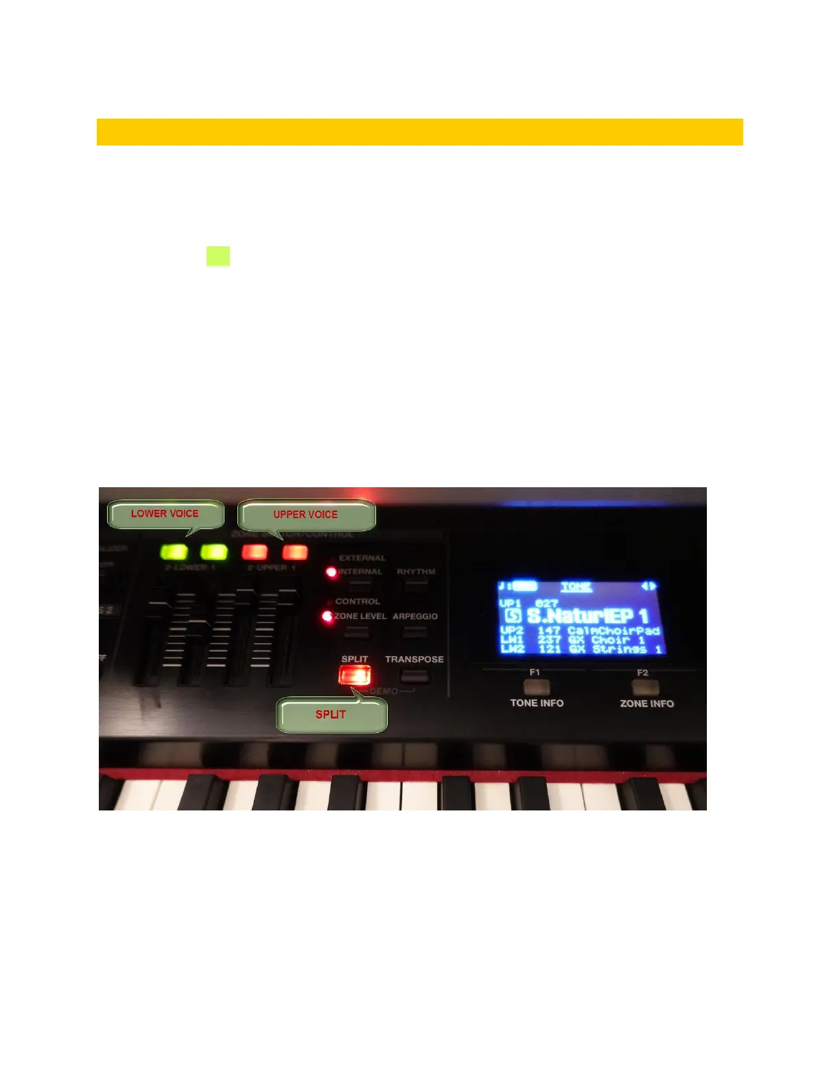 Turn on SPLIT. Hold down for the SPLIT button for 2 seconds.
